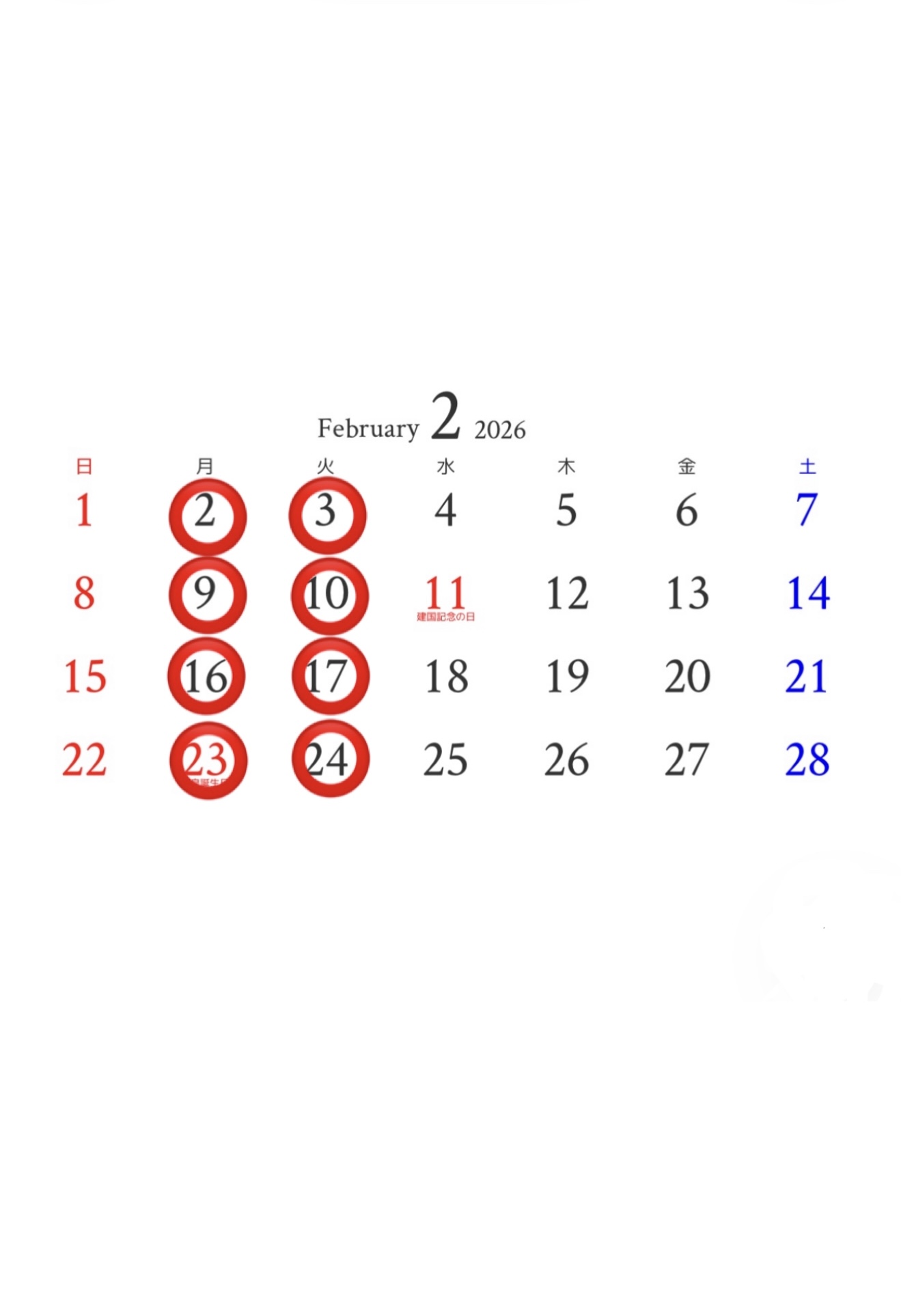 News 2月のお休みのお知らせ ◆ 2月のお休みと営業時間◆ 【定休日】 月曜・火曜 【営業時間】 平日 11:00〜18:00 土日祝 10:00〜 パーマカラー16:00 カット 18:00 2026-01-30 | Posted in News < 1月のお休みのお知らせ